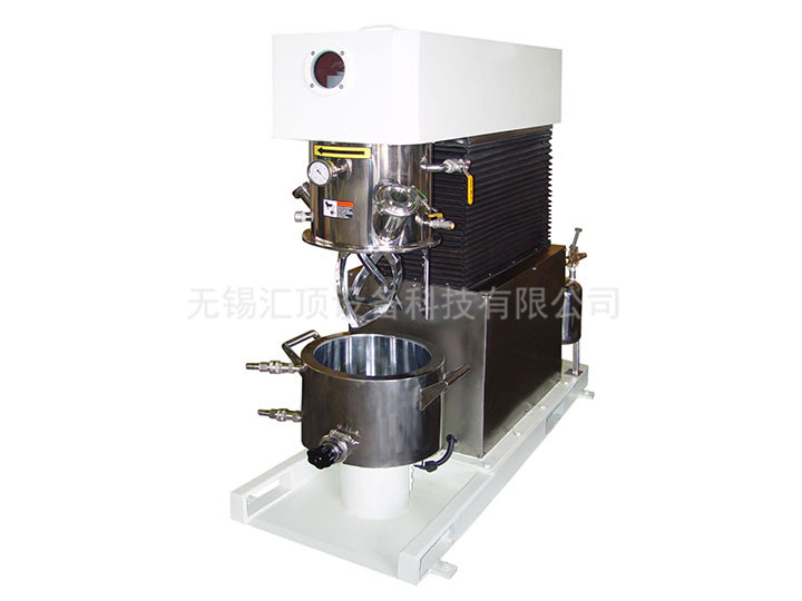 由攪拌桶、攪拌蓋、攪拌動力頭(含兩組低速攪拌槳、兩組高速分散器及一組刮壁槳)、溫控裝置、升降裝置、鎖桶裝置及控制系統(tǒng)等組成。